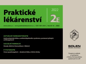 AKTUÁLNÍ FARMAKOTERAPIE Antitrombotická léčba u antifosfolipidového syndromu, postavení přímých antikoagulancií SOCIÁLNÍ FARMACIE Zásady efektivní komunikace v lékárně FYTOTERAPIE Cissus quadrangularis – obsahové látky a léčivé účinky www.solen.cz | www.praktickelekarenstvi.cz | ISSN 1801-2434 | Ročník 18 | 2022 Praktické lékárenství 2022 Časopis je vydáván ve spolupráci s Českou farmaceutickou společností ČLS JEP